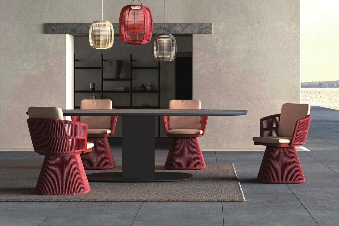 Lotus Pillar Dining Table with Jumbo Dining Chairs.